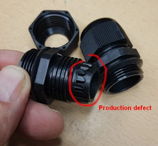 We chose the M25 Nylon Cable Gland for a new electronic product, for which we had to undergo long certification process before bringing to market. The first deliveries in 2024 worked well, with only a few minor quality issues (mold fill defects). However, starting in 2025, the new deliveries showed increasing quality problems, including surface defects and poor material quality.